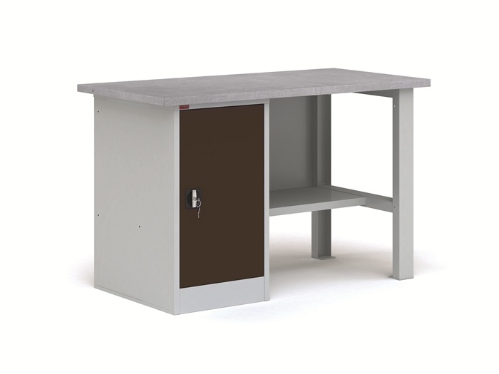 Металлические слесарный верстак ВП-2/1,2 черный представляет собой рабочий стол для ручной обработки металлических, деревянных изделий, а также предметов, выполненных из других материалов. Металлический верстак используется в мастерских, гаражах, автосервисах и в других рабочих зонах. Он являются основой, как небольшого промышленного производства, так и крупного предприятия. Допустимая равномерно распределенная нагрузка на верстак - 1000 кг, на полку верстачную - 40 кг, на полку тумбы- 30 кг. В комплект верстака ВП-2/1,2 черный входит: столешница СТ-1,2 из МДФ, покрытая оцинкованным листовым металлом, комплект -2/1,2 (стенка задняя металлическая, металлическая верстачная опора), тумба Т-1 с двумя съемными полками. Дверь тумбы закрывается ключевым замком. Тумбу можно установить как с левой, так и правой стороны верстака. Дополнительно на верстак можно установить перфорированные экраны соответствующего размера, аксессуары на экран. Цвет: верстак - серый Ral 7035, дверь тумбы - черный муар Ral 7021