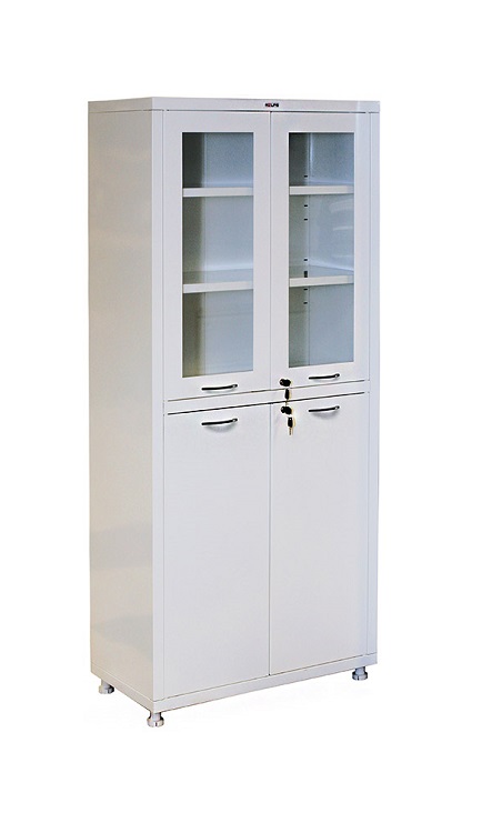 Медицинский двухстворчатый шкаф серии HILFE MD 1 1780 R предназначен для хранения медикаментов, инструментов, документов, хозяйственного инвентаря в больницах, поликлиниках, лабораториях и других организациях лечебно-профилактического назначения. Шкаф соответствуют требованиям нормативных документов Росздравнадзора и СанПиН. Корпус изготовлен из высококачественной холоднокатанной стали толщиной 0,6 мм, металлические двери из стали толщиной 0,7 мм, стеклянные двери из стекла толщиной 4 мм. В комплектацию входят: металлические полки, регулируемые опоры с диапазоном регулировки от 95 до 125 мм, эргономические хромированные ручки. Возможна установка трейзера MD 1 1650, MD 2 1670. В металлические двери установлен ключевой замок HILFE (2000 комбинаций). Цвет шкафа: белый структурированный. Тип покрытия - гигиенически безопасное, коррозийно-устойчивое порошковое. Поставляется в разобранном виде